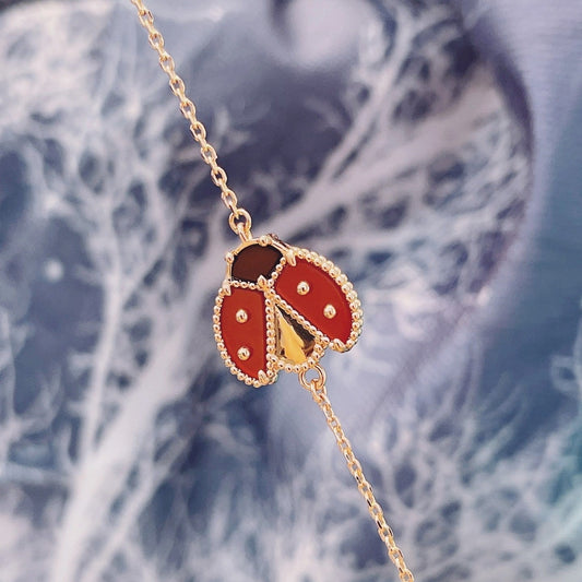 [RAFFINE]CLOVER 5 MOTIFS RED AGATE BRACELET